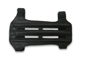 Traditionally crafted black leather armguard with re-enforced velcro fastening. Suitable for both right or left handed archers.